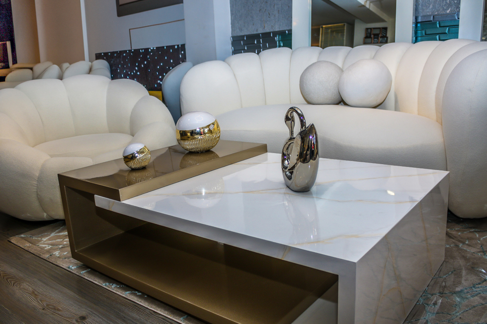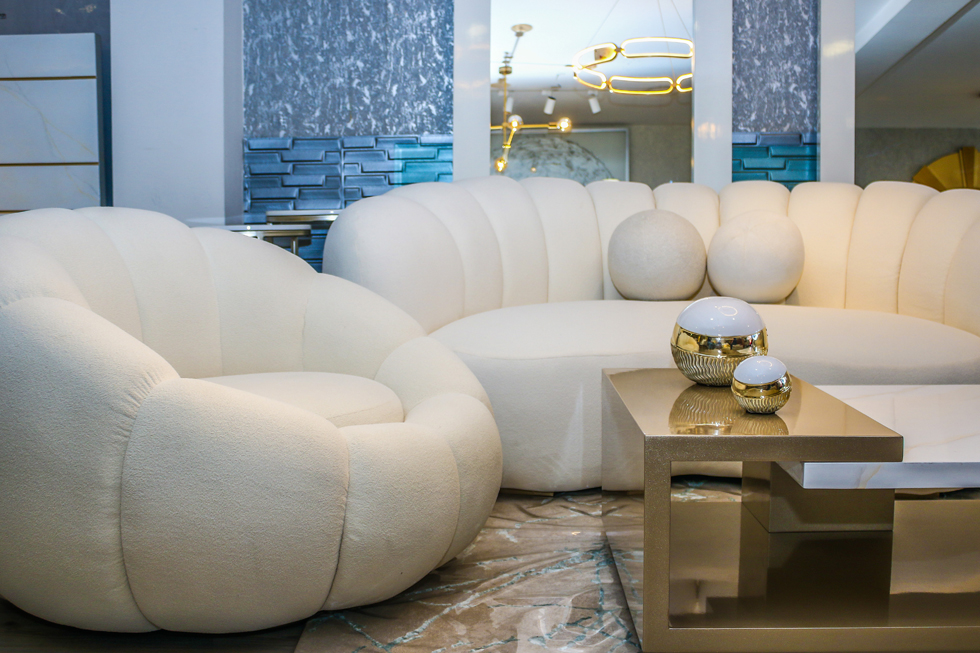 Sofá 3 puestos, sheislong, poltrona (silla flor) y mesa de centro.